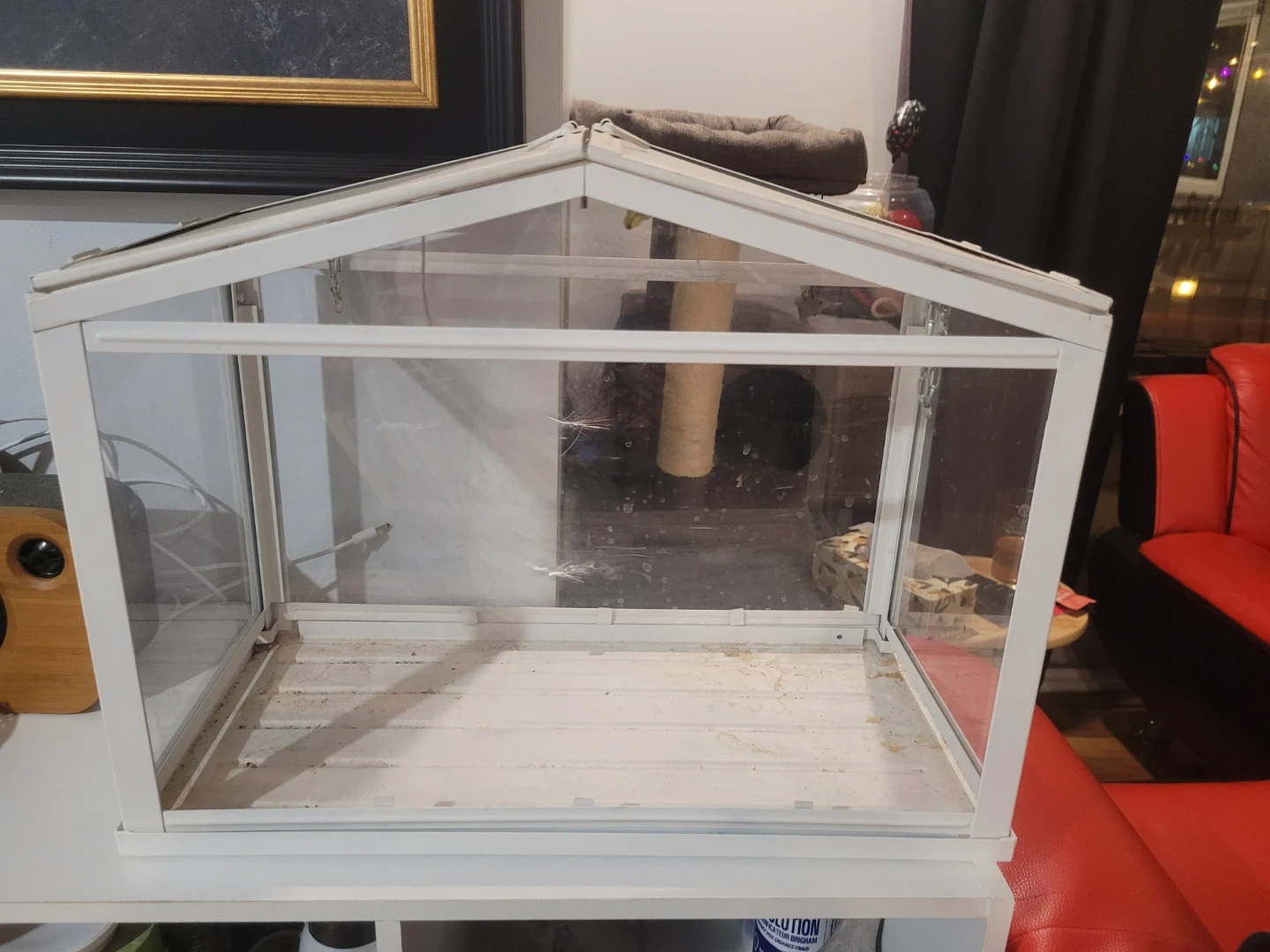 Selling a greenhouse cabinet. It would be perfect for starting your seedlings or displaying plants indoors. It's in decent condition with a few cracks and ready for a new home! 17.5 x 18.5 x 13.5