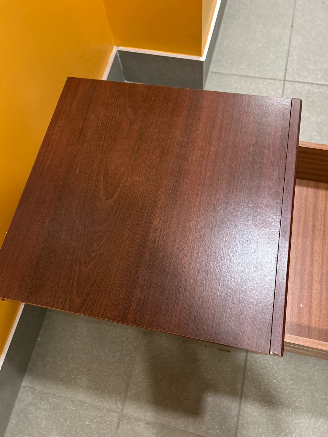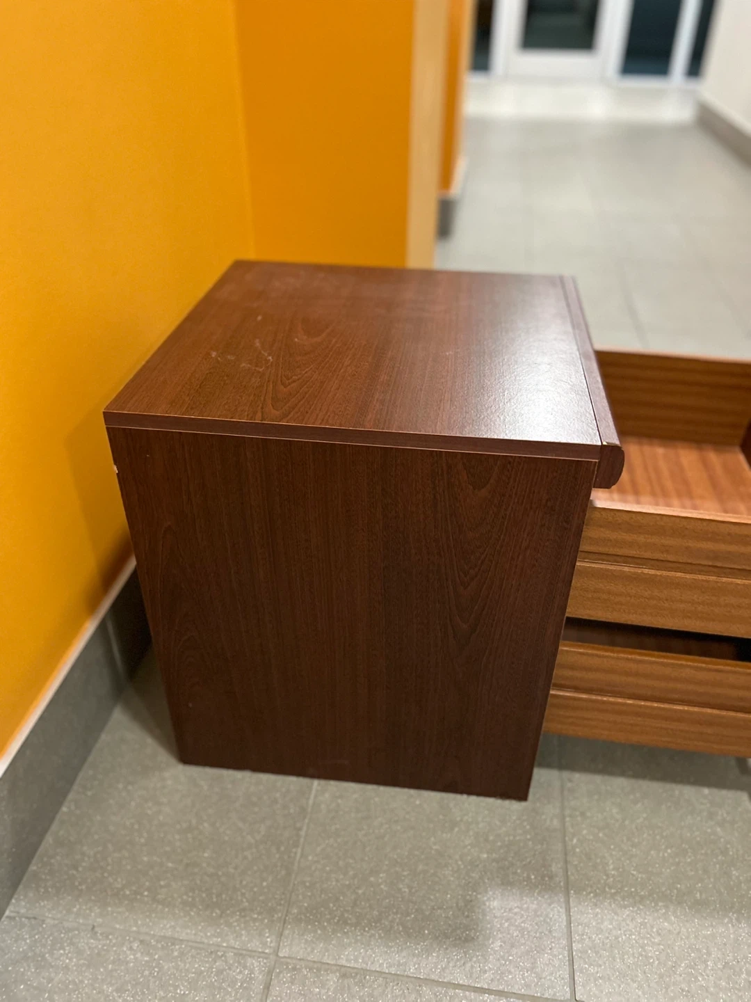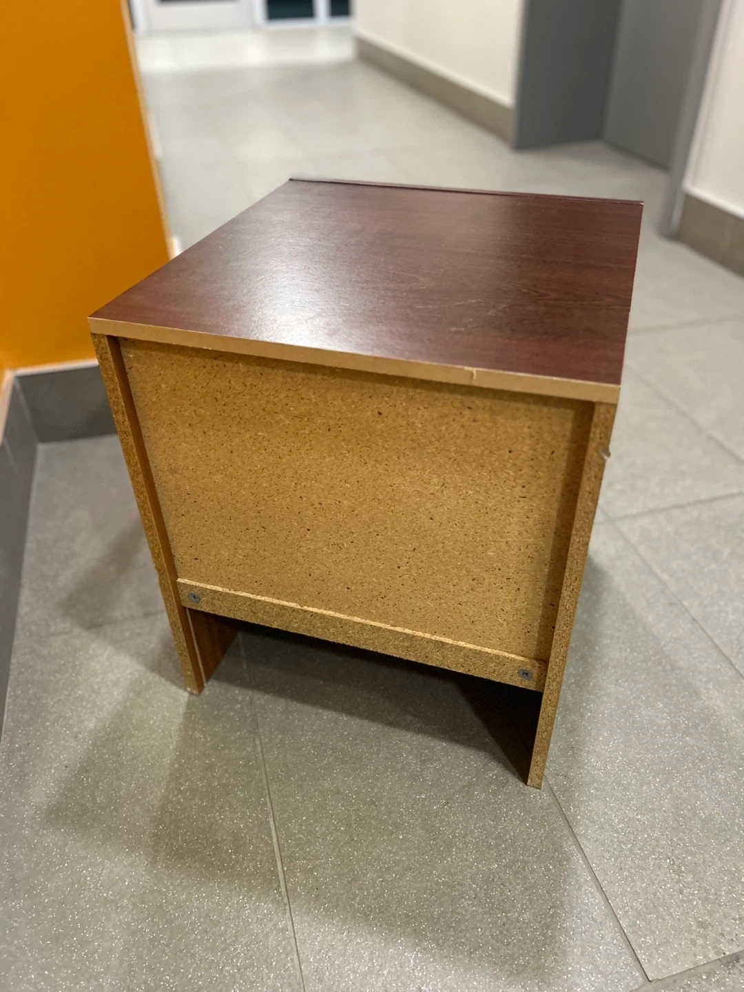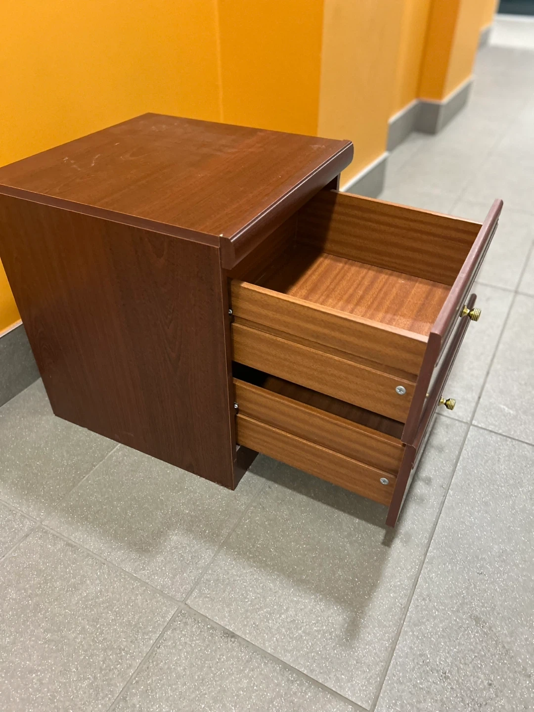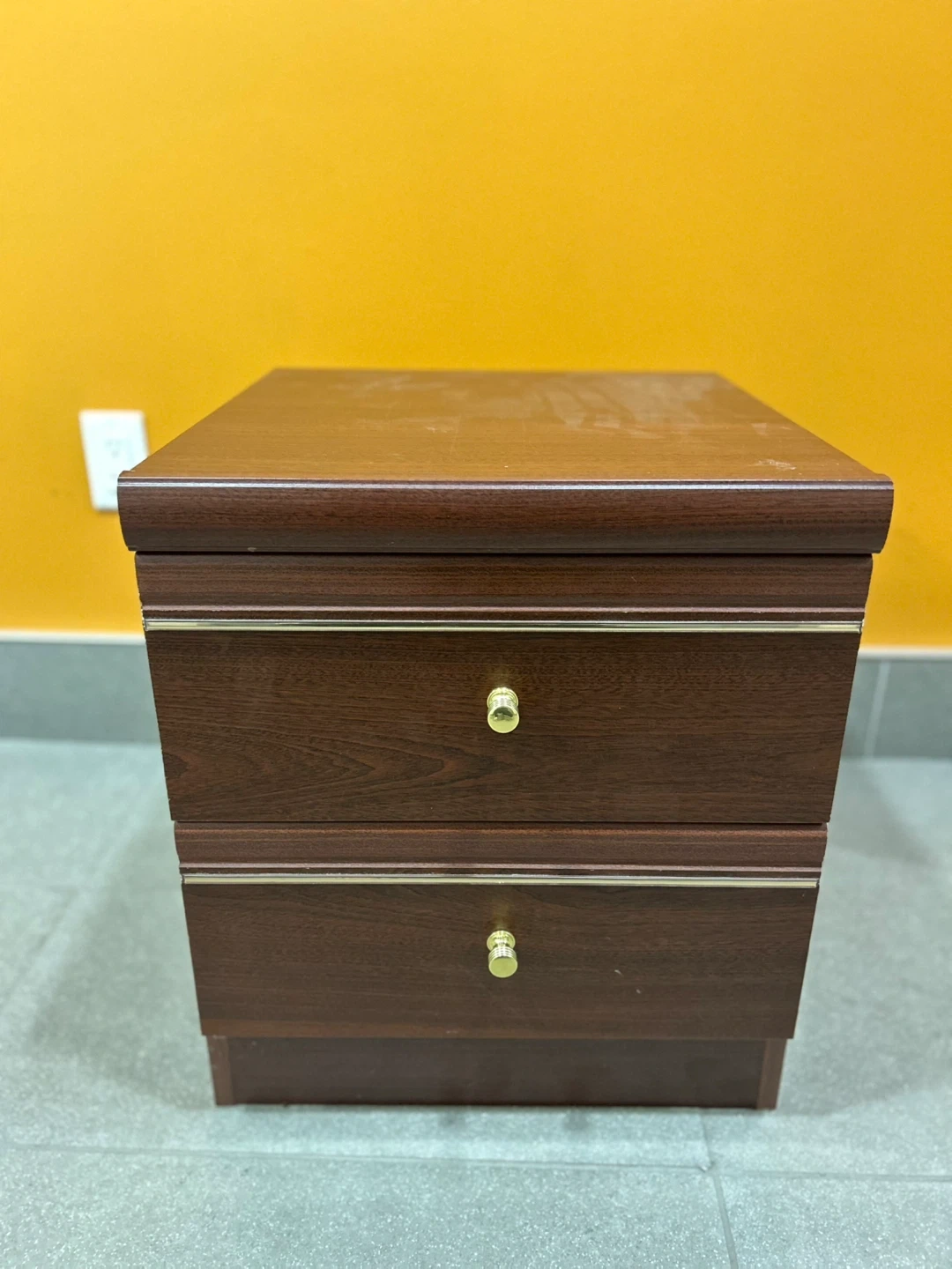 Here's a lovely wood nightstand with two drawers! It's perfect for keeping your bedside essentials organized. The drawers slide smoothly, and the wood finish adds a touch of warmth to any room