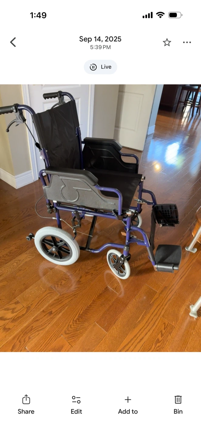 Buy & SellWheelchairWheelchair$137LiVINGbasics light weight transport wheelchair with hand brakes, 17.7 inch wide seat foldable support weight up to 220lbsWHERE TO MEETCheck LocationView MapSELLERKristinaChurchill Meadows100 reviews0 chats·1 favorites·28 viewsSEND CHAT TO SELLERHi Kristina! I’m interested in your listing.Hi Kristina! I’m interested in your listing.Get the Karrot app to chatSign In to chat