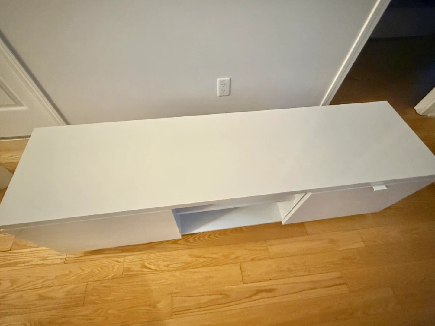 Selling an IKEA BYÅS TV bench in high gloss white. Very good condition as I never used it. It measures 160x42x45 cm (63x16 1/2x17 3/4 ").