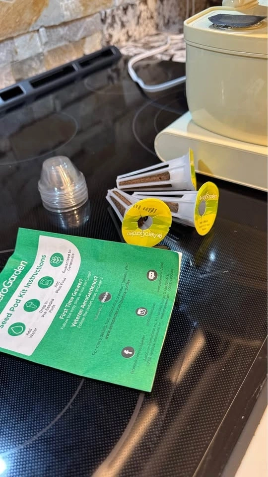 6 pods aero garden hydroponic garden allows herbs or veggies to grow indoors. Great for condos. I’m including booklet, 3 pods and their domes.