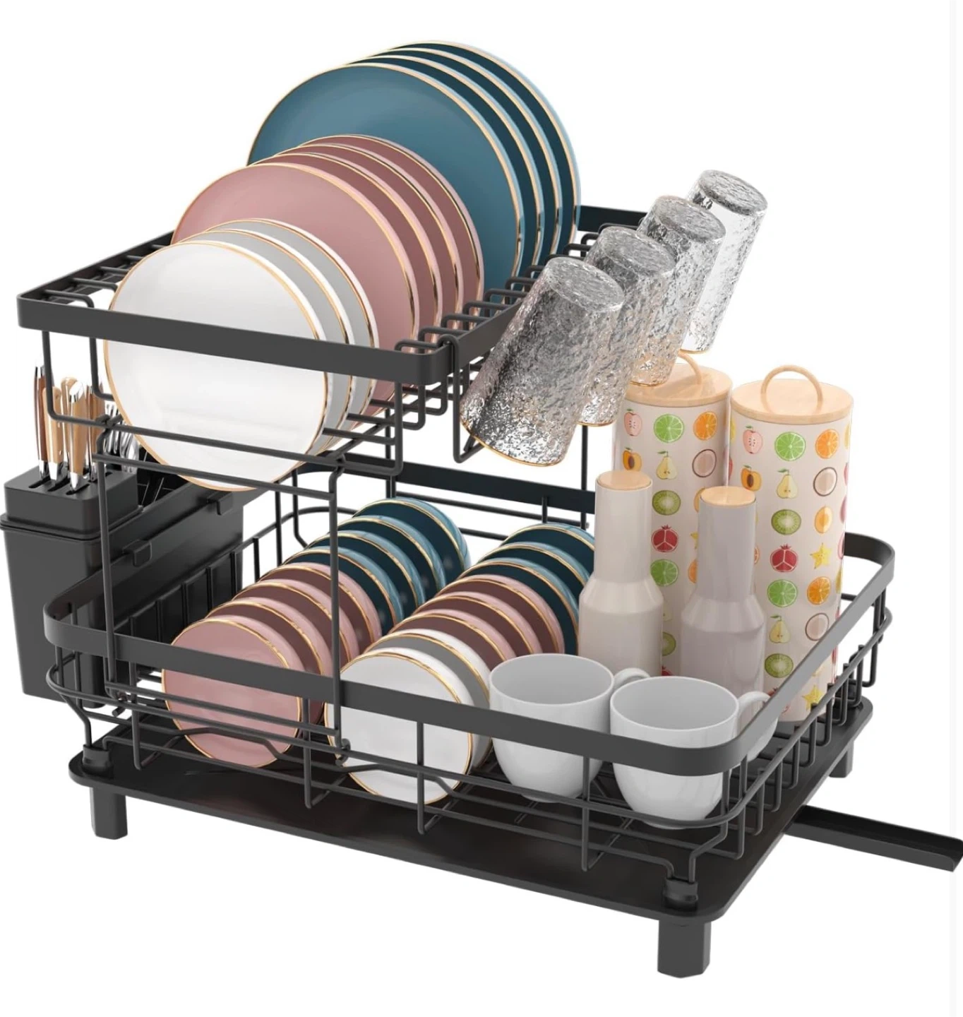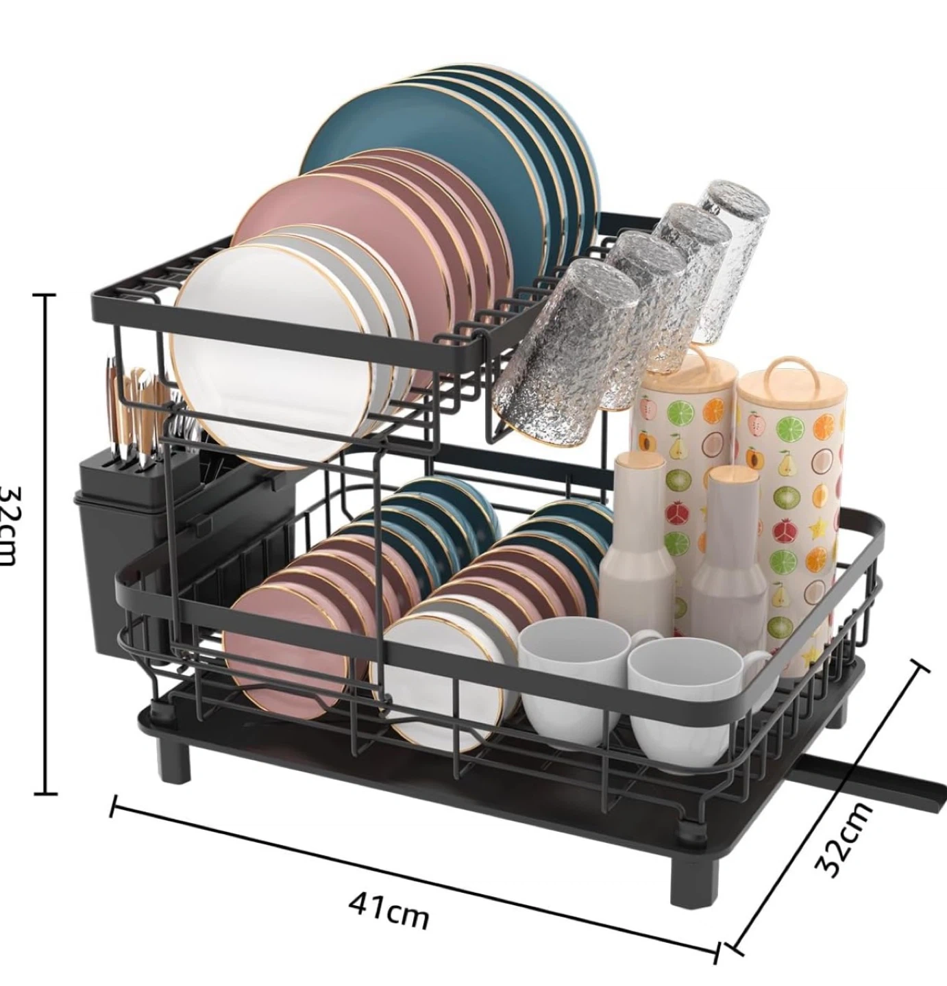 • Product Functionality: A multi-functional dish drying rack with a double-layer design, providing ample storage space for various kitchen utensils.