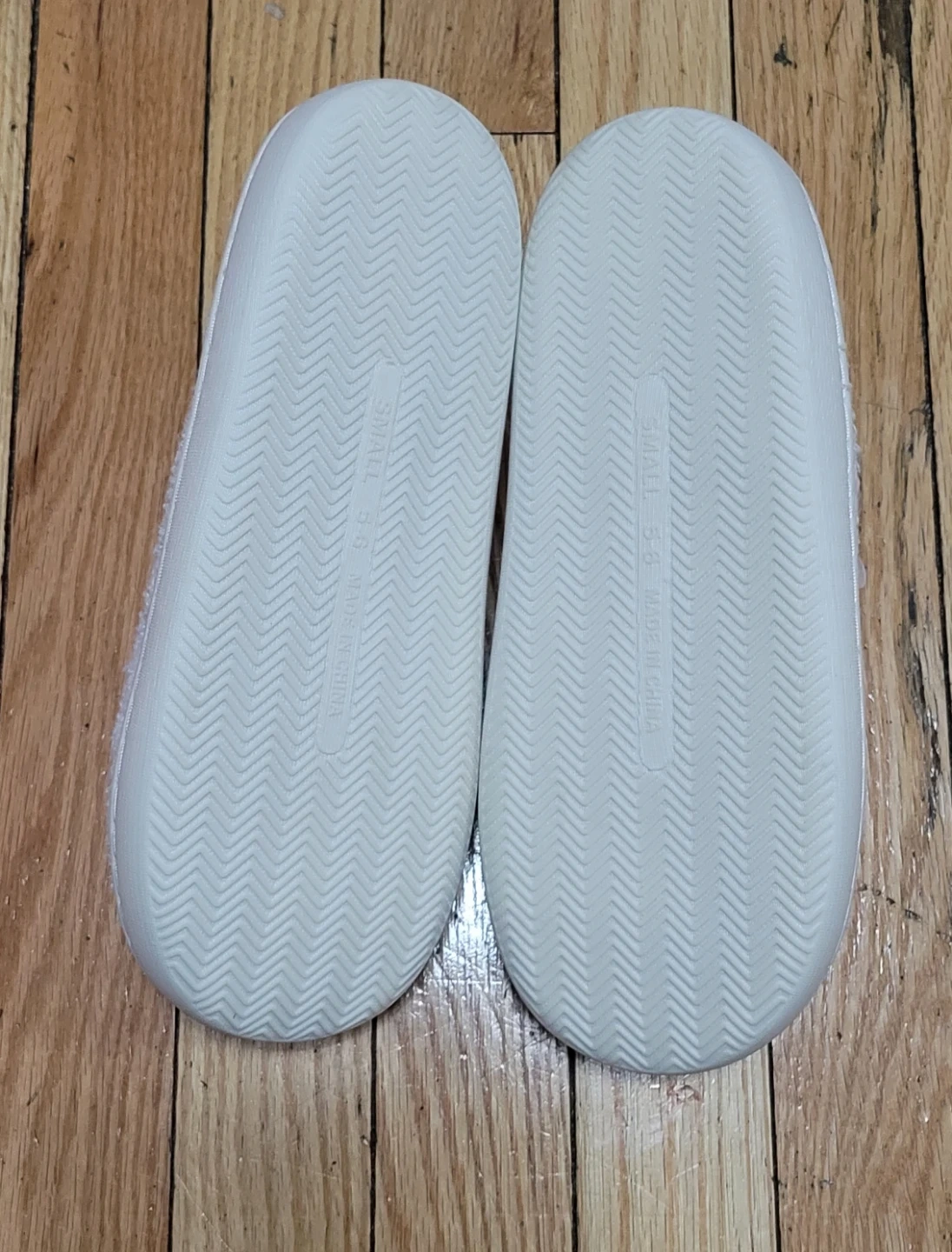 Cute smiley face slippers in a size small (5-6)! They're super comfy and perfect for wearing around the house