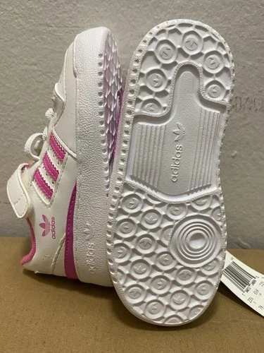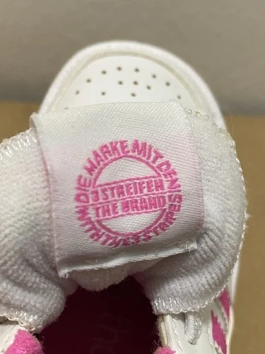 • Color: White with fuchsia pink details (includes the iconic 3 stripes).