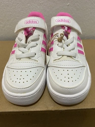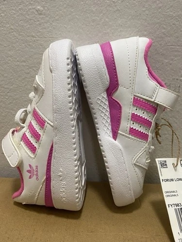 • Color: White with fuchsia pink details (includes the iconic 3 stripes).