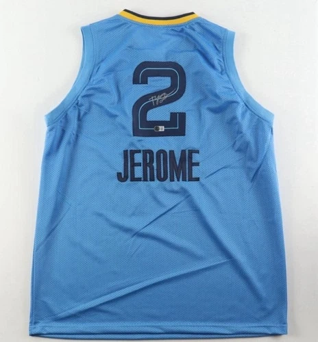 Ty Jerome signed jersey with Beckett Authentication Services (BAS) certification. The jersey is a size XL and features the autograph of the Memphis Grizzlies NBA player. This officially licensed memorabilia item is perfect for fans of basketball and collectors of autographed sports merchandise. It is a unique and valuable piece that showcases the player's authenticity and connection to the team. Custom jersey with everything sewn on, size XL. Hand-signed by Ty Jerome.