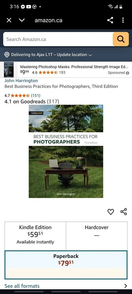 Buy & SellBest Business Practices for Photographers, Third EditionBest Business Practices for Photographers, Third Edition$65Feel free to message if you have any questions!WHERE TO MEETCheck LocationView MapSELLERjomanaWestney & Kingston100 reviews0 chats·0 favorites·0 viewsSEND CHAT TO SELLERHi jomana! I’m interested in your listing.Hi jomana! I’m interested in your listing.Get the Karrot app to chatSign In to chat