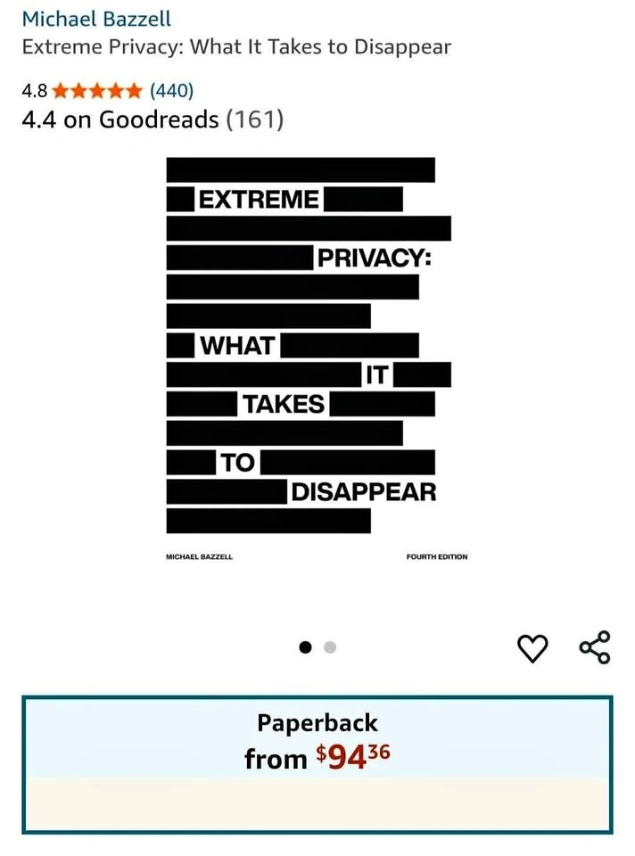 Buy & SellExtreme Privacy: What It Takes to Disappear 4th editionExtreme Privacy: What It Takes to Disappear 4th edition$60Let me know if you're interested!WHERE TO MEETCheck LocationView MapSELLERjomanaWestney & Kingston100 reviews0 chats·0 favorites·1 viewsSEND CHAT TO SELLERHi jomana! I’m interested in your listing.Hi jomana! I’m interested in your listing.Get the Karrot app to chatSign In to chat