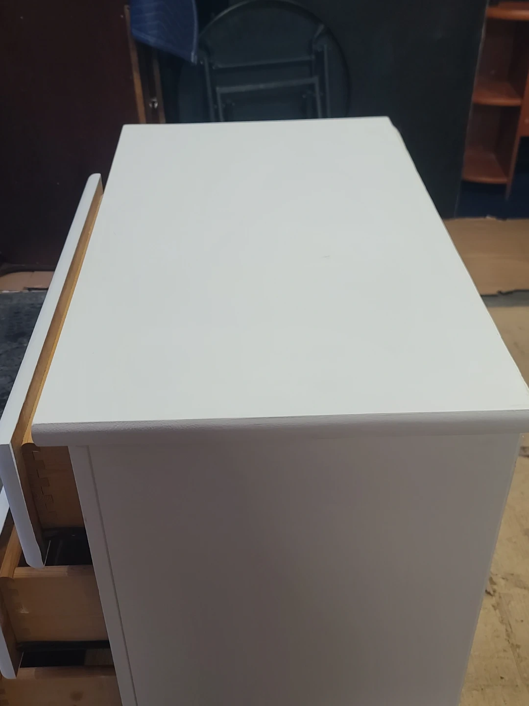 White chest of drawers with four drawers! It's perfect for adding some extra storage to any room. It has some signs of wear on the sides, as shown in the pictures. Measurements: W 30" X D 17" X H 39". Delivery can be arranged. Viewing and pickup by appointment.