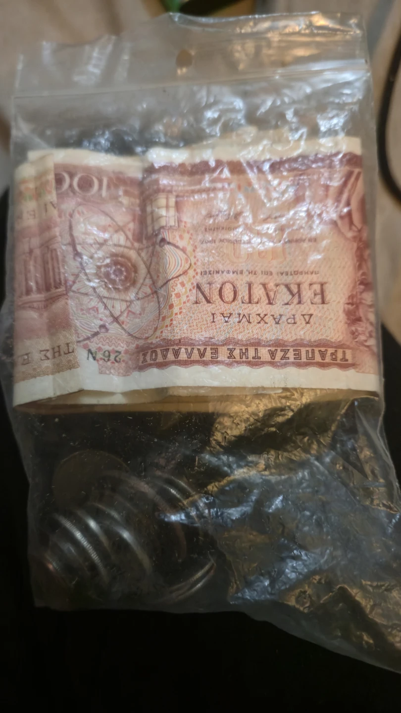 Selling a bag of old foreign currency, including stack of Greek Drachmas and some coins (one penny from 1800s) (a European half penny from 1910) (american 1973 50 cent coin in mint condition) plus more Great for collectors or anyone interested in a bit of international history!
