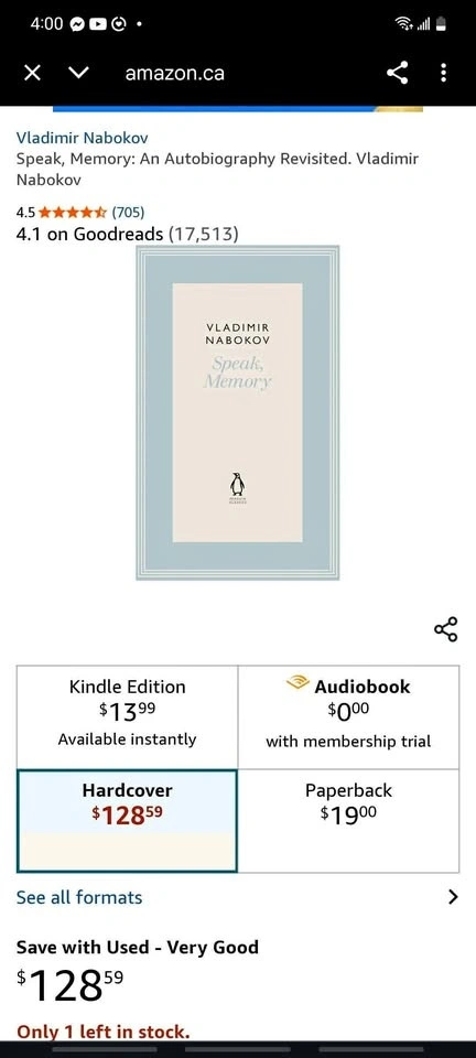 Buy & SellSpeak, Memory: An Autobiography Revisited. Vladimir NabokovSpeak, Memory: An Autobiography Revisited. Vladimir Nabokov$40Feel free to message if you have any questions!WHERE TO MEETCheck LocationView MapSELLERjomanaWestney & Kingston100 reviews0 chats·0 favorites·1 viewsSEND CHAT TO SELLERHi jomana! I’m interested in your listing.Hi jomana! I’m interested in your listing.Get the Karrot app to chatSign In to chat
