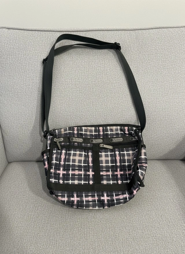 For sale is an original LeSportsac crossbody shoulder bag in a grey plaid / check pattern, known for its lightweight and practical design. This bag is ideal for daily errands, travel, or casual outings.
