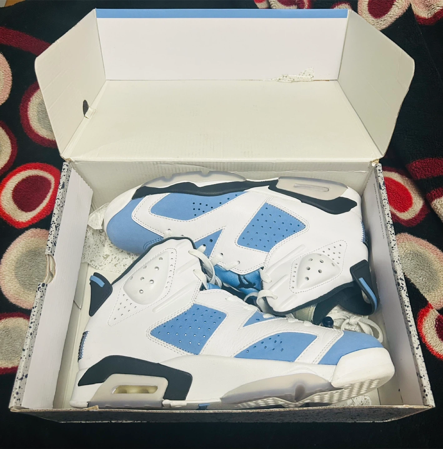 Selling a pair of Air Jordan 6 Retro UNC sneakers in excellent condition! They come with the original box. These are a classic and stylish addition to any sneaker collection