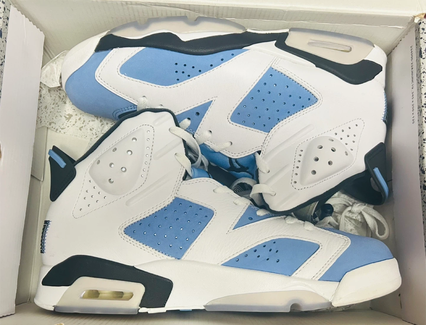 Selling a pair of Air Jordan 6 Retro UNC sneakers in excellent condition! They come with the original box. These are a classic and stylish addition to any sneaker collection