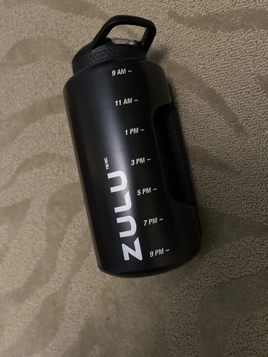 Selling a ZULU 1-gallon water bottle! It's great for staying hydrated throughout the day. The bottle is black and features time markings to help you track your water intake. Perfect for workouts, hikes, or just daily use