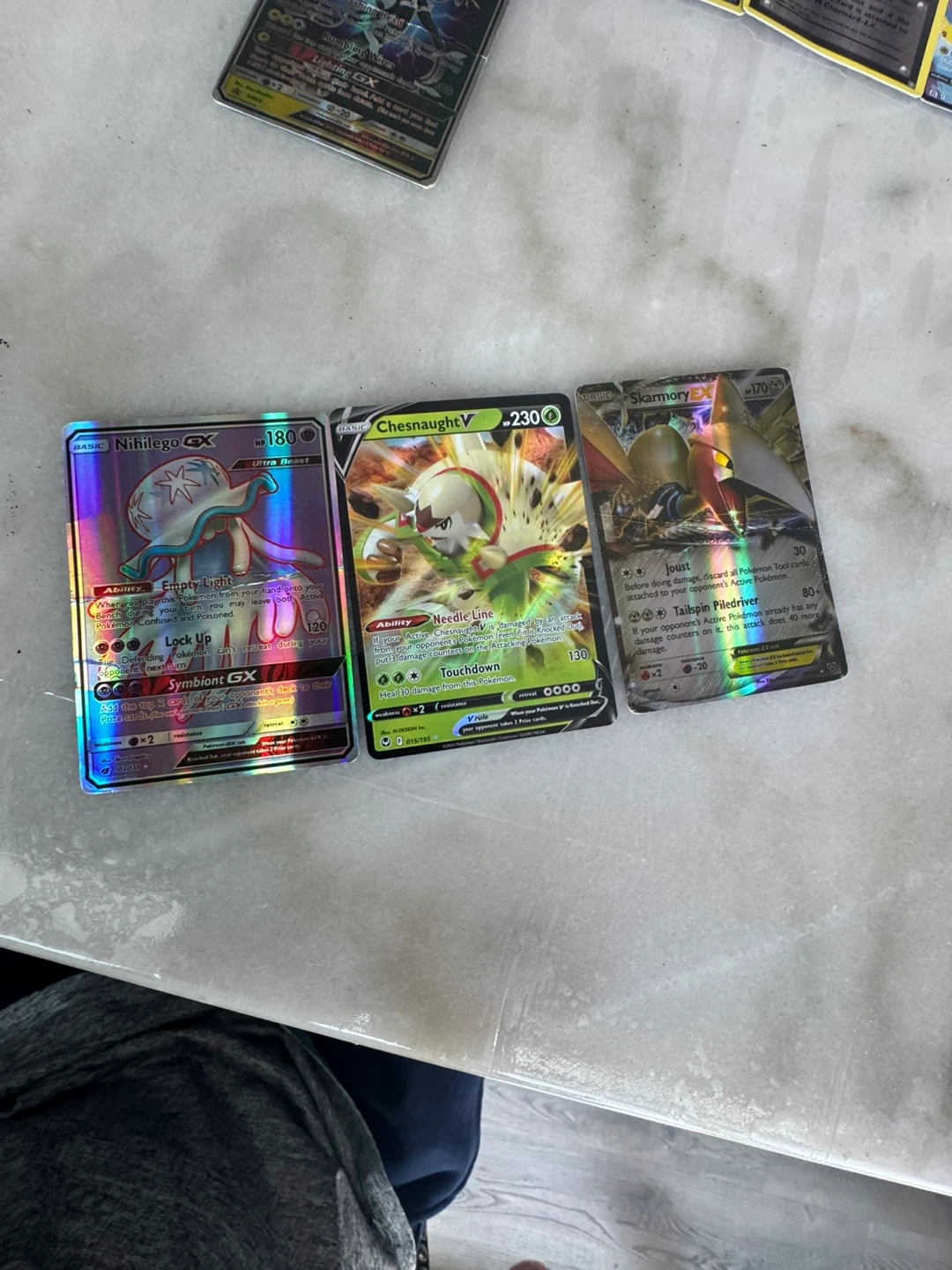 Selling a collection of Pokemon trading cards! Includes a variety of GX, EX, V, and VMAX cards. Great for collectors or players looking to expand their collection