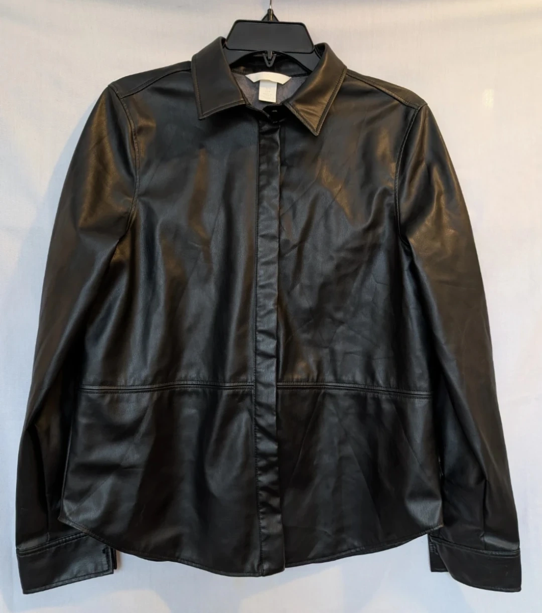 H&M Black Faux Leather Shirt - Size S