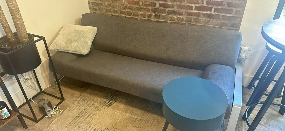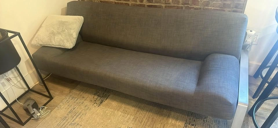 In good shape. Have it for 3 years. Converts into a bed. I want to create a studio so it has to go. 78 inches wide 33 inches depth