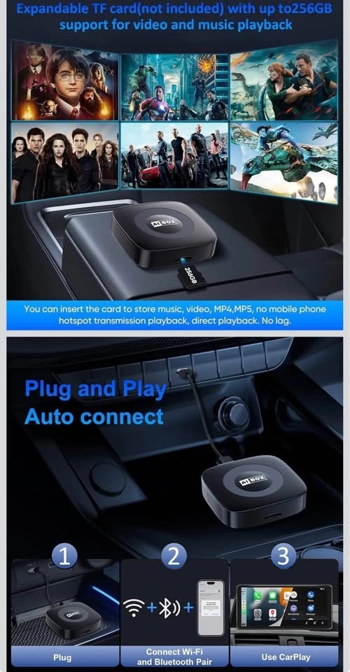 Upgrade your carβs infotainment system with this 3-in-1 Wireless Adapter (AI Box). Enjoy wireless CarPlay, wireless Android Auto, and access to popular apps β no cables needed!