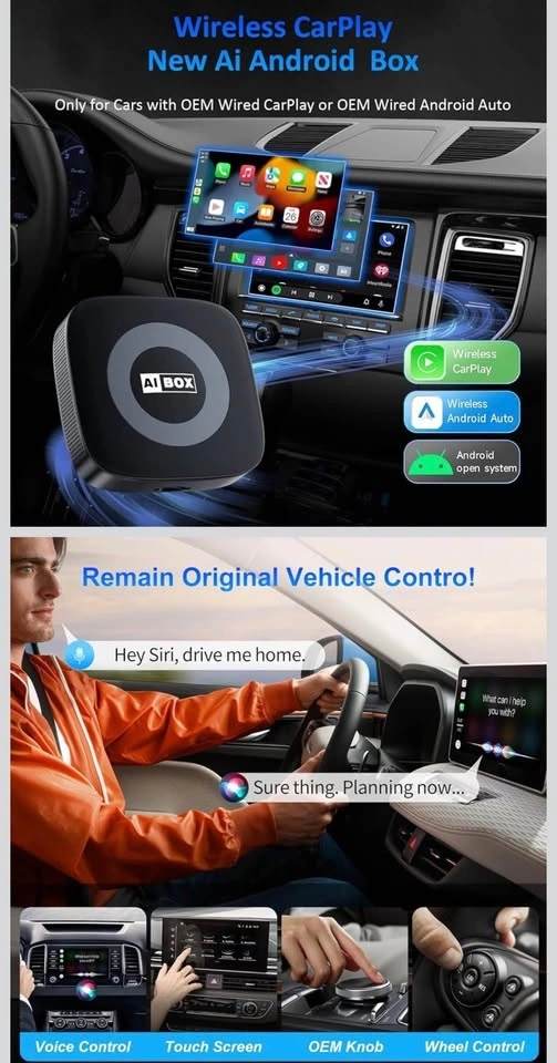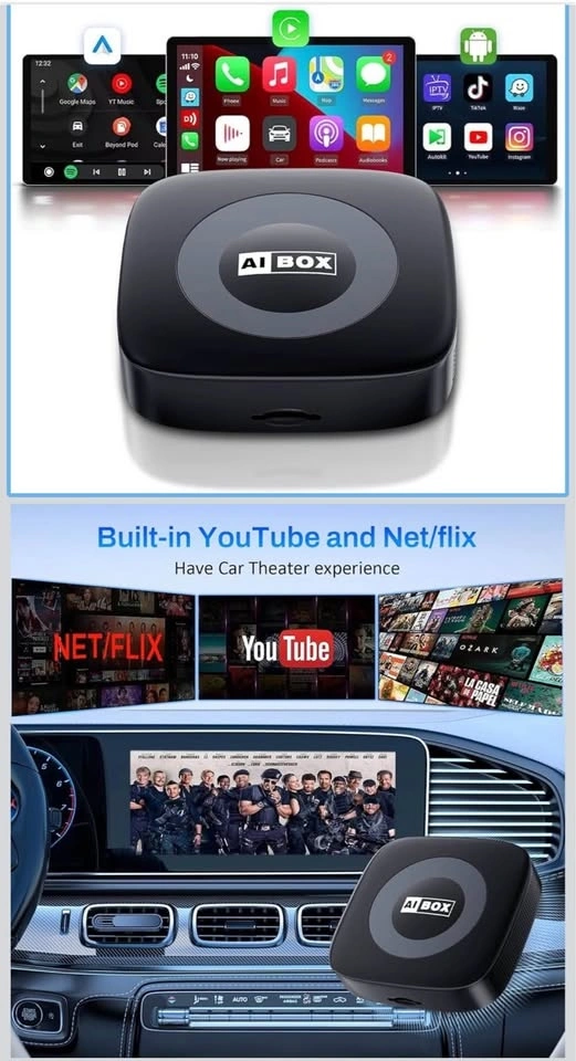 Upgrade your carβs infotainment system with this 3-in-1 Wireless Adapter (AI Box). Enjoy wireless CarPlay, wireless Android Auto, and access to popular apps β no cables needed!