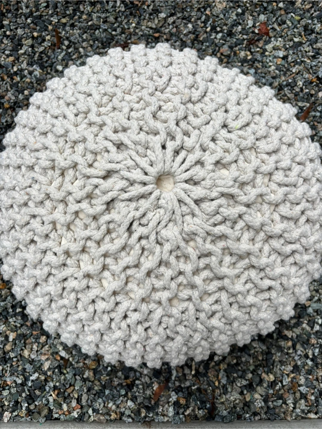 Selling a hand-knitted round floor pouf. It's in great condition and would be a cozy addition to any room. Perfect as extra seating or a footrest! COTTON