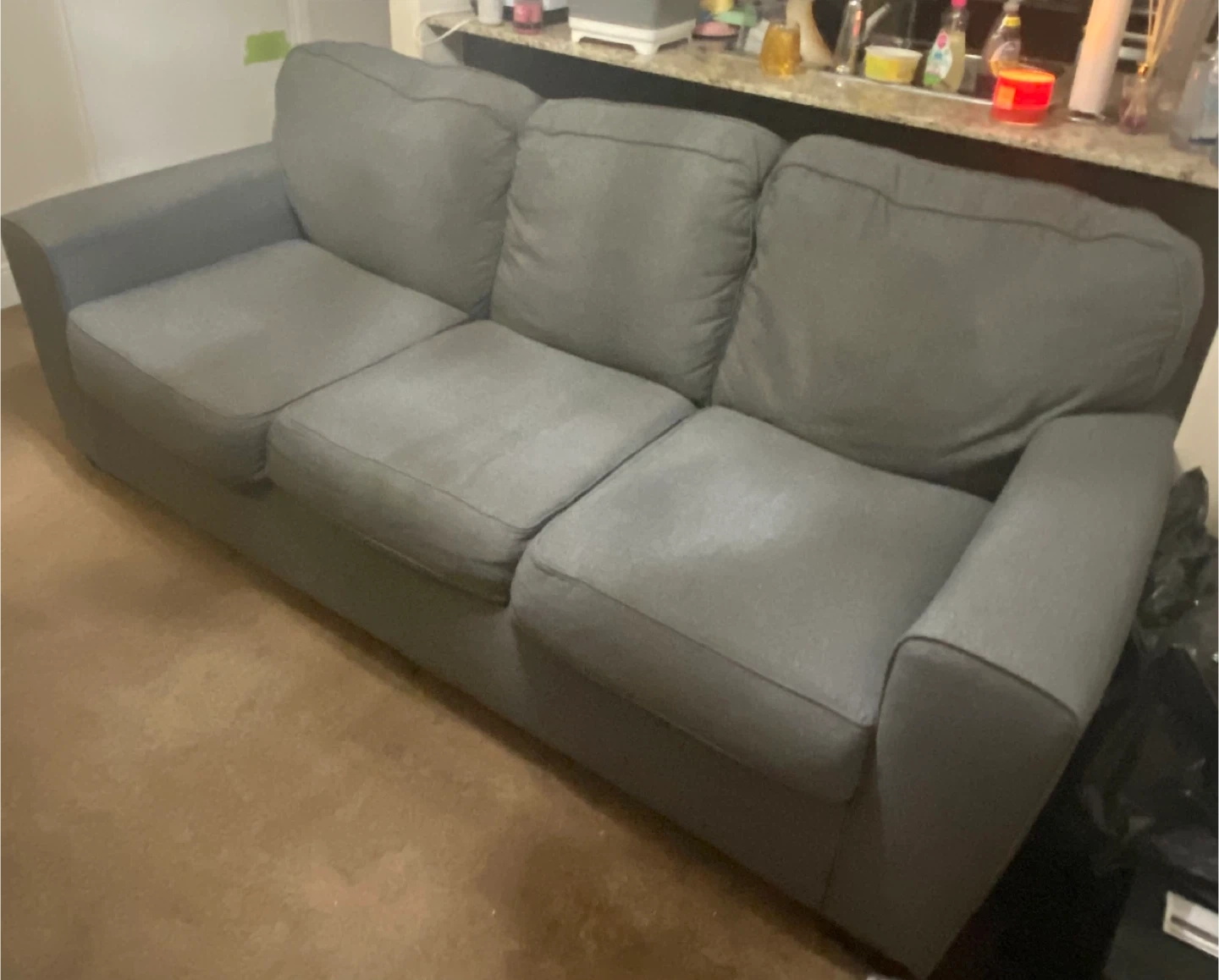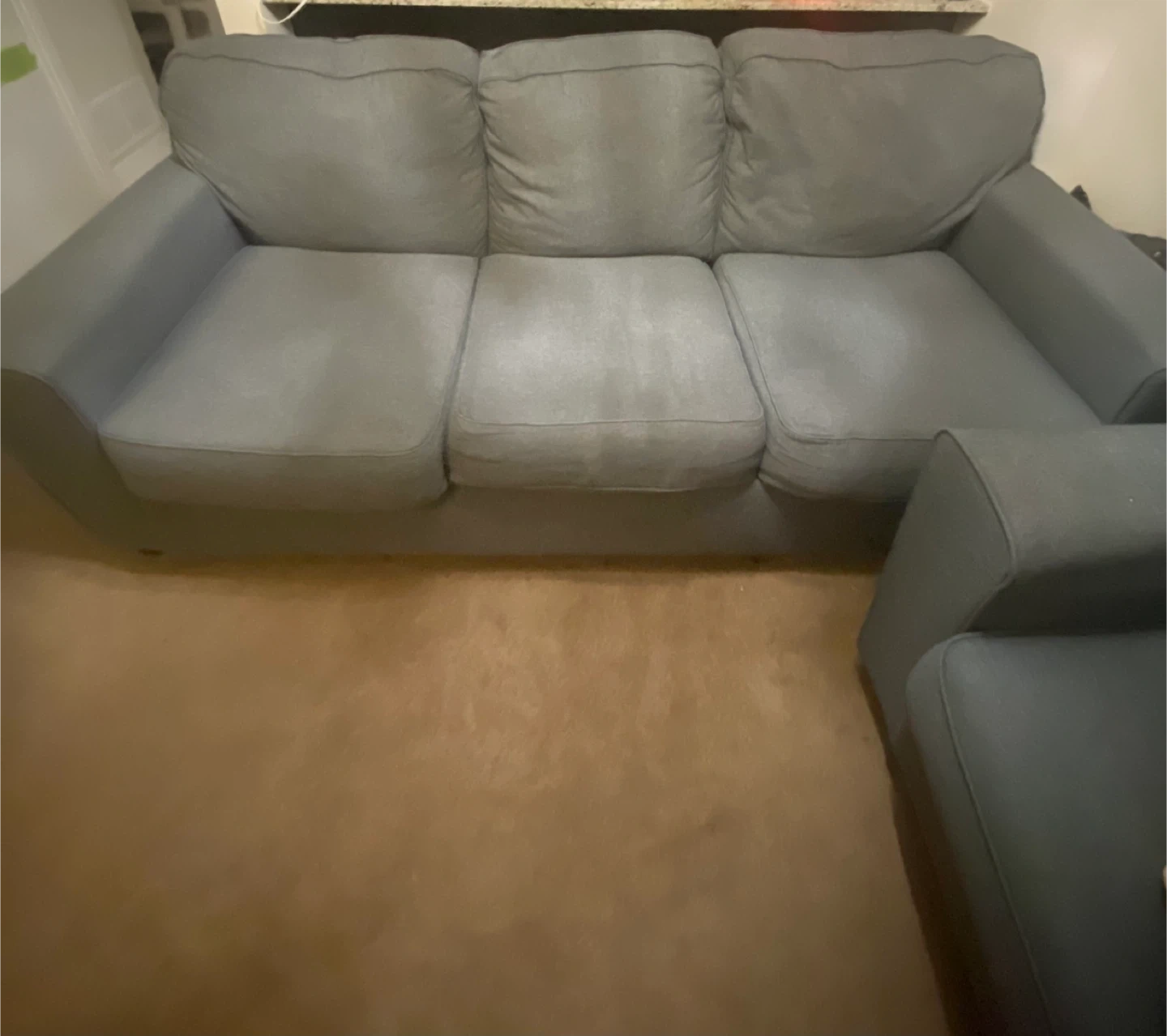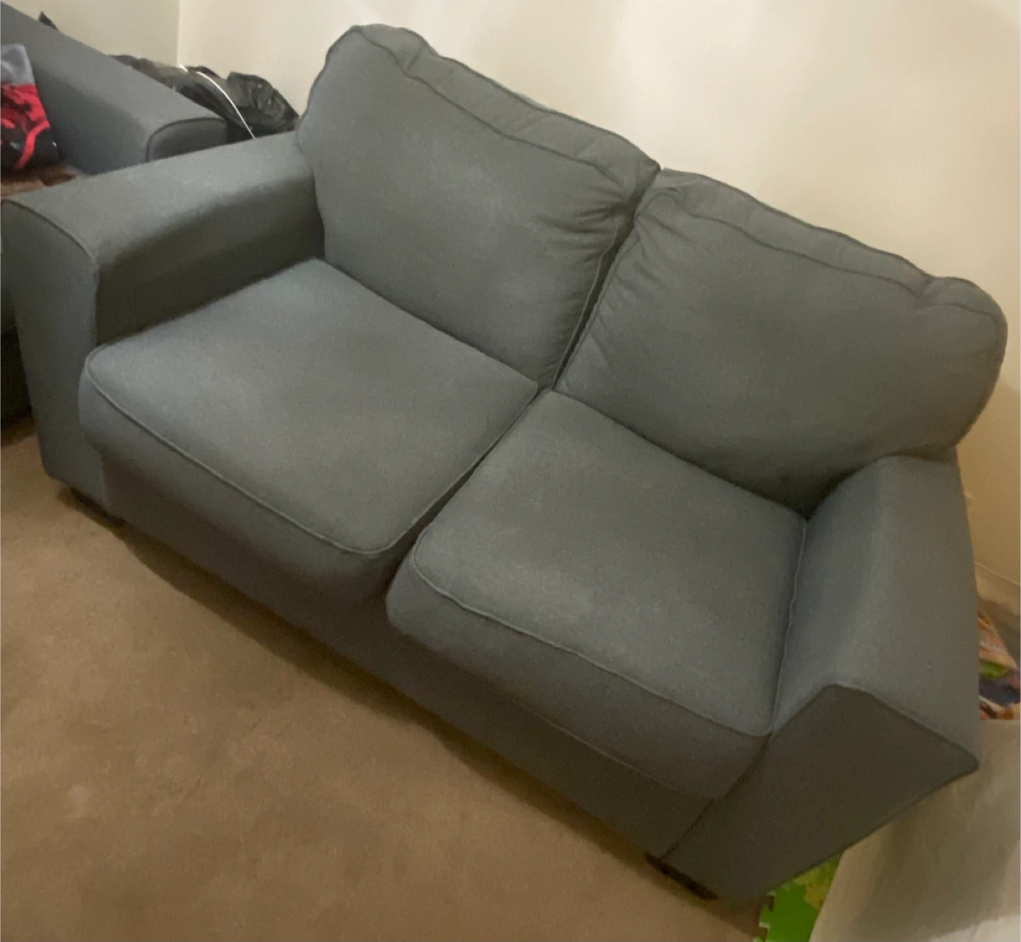 Selling a comfortable grey three-seater sofa along with a matching loveseat! Perfect for a living room or family room setup. The set is in good condition and ready for a new home.