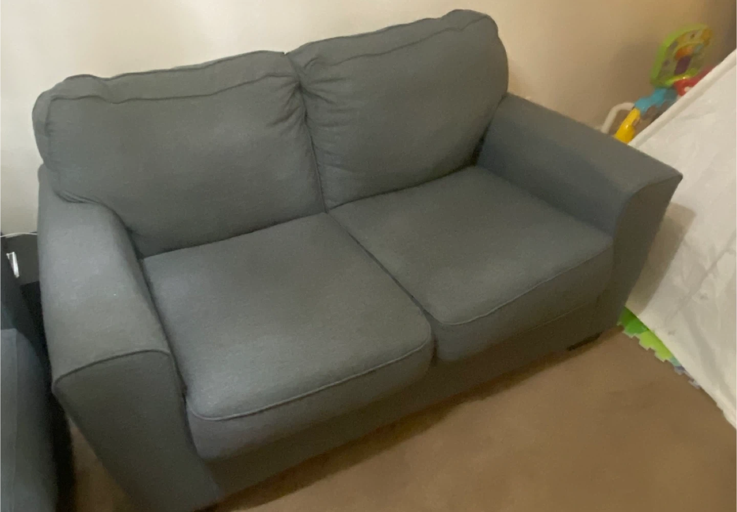 Selling a comfortable grey three-seater sofa along with a matching loveseat! Perfect for a living room or family room setup. The set is in good condition and ready for a new home.