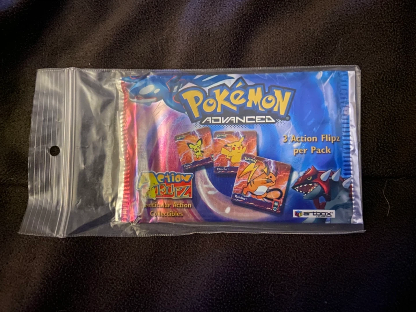 Selling a new, sealed pack of Pokémon Advanced Action Flipz! This pack contains 3 Action Flipz and is recommended for ages 6 and up. A fun collectible for any Pokémon fan