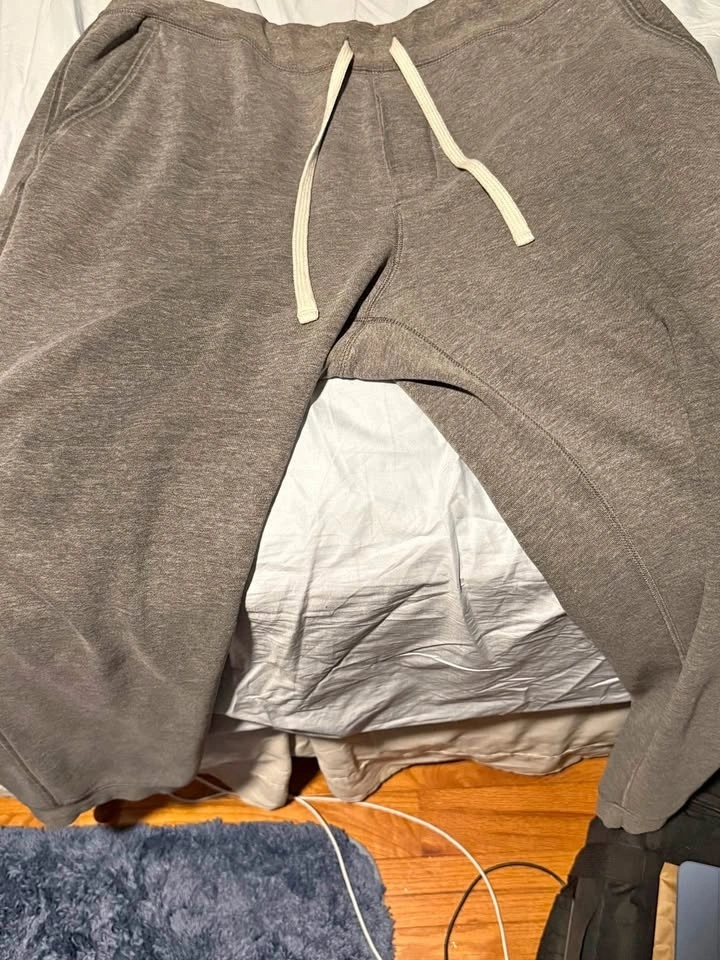 Gray Sweatpants, they’re a Men’s XL, and has some slight staining due to working with oil that isn’t too noticeable (Located where the thighs would be). Otherwise in good condition, comfy, and warm—only getting rid of this as I purchased new sweats. Be sure to check out my seller profile in case you’d like anything else to pick up in one trip! Thank you 🙏