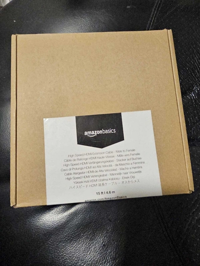 This AmazonBasics HDMI extension cable, 15 feet long, is ideal for extending the reach of your existing HDMI cables, supporting Ethernet, 3D, 4K video, and Audio Return Channel (ARC) functionality. It's in like-new condition, ensuring high-quality connectivity for your devices.