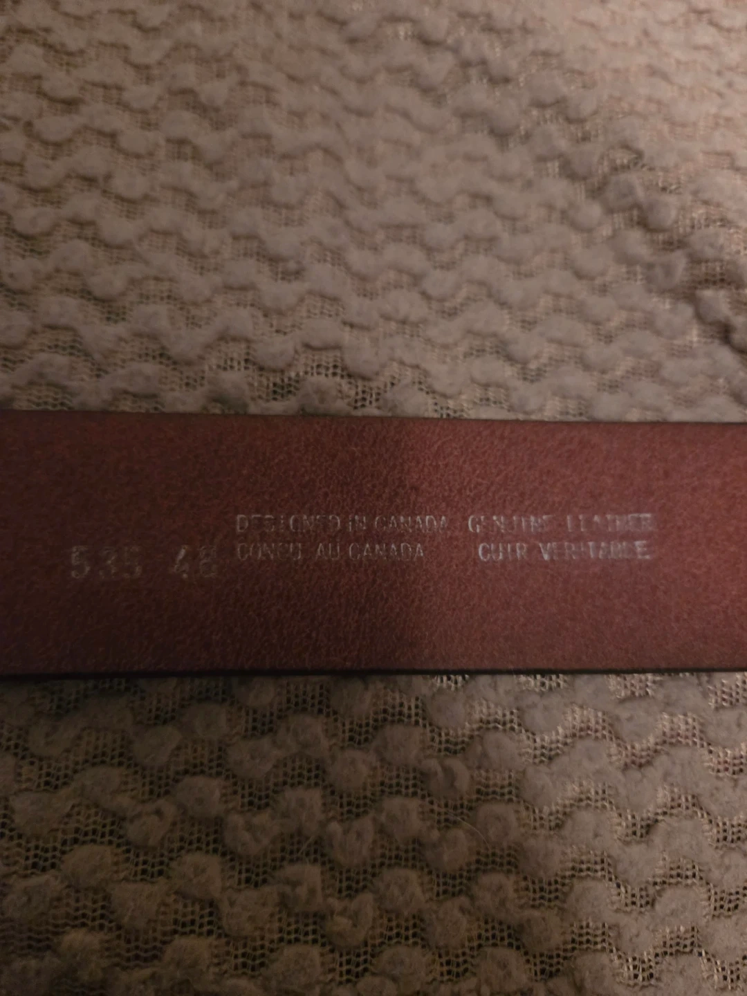Selling a genuine leather belt designed in Canada! It's a size 48 and has a cool, subtle pattern on it. Perfect to add a bit of style to any outfit