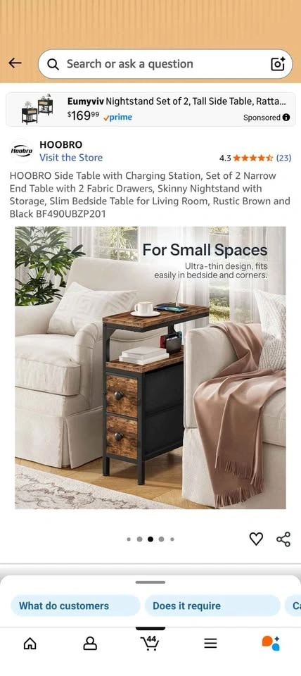 HOOBRO Side Table Set of 2 with Charging Station