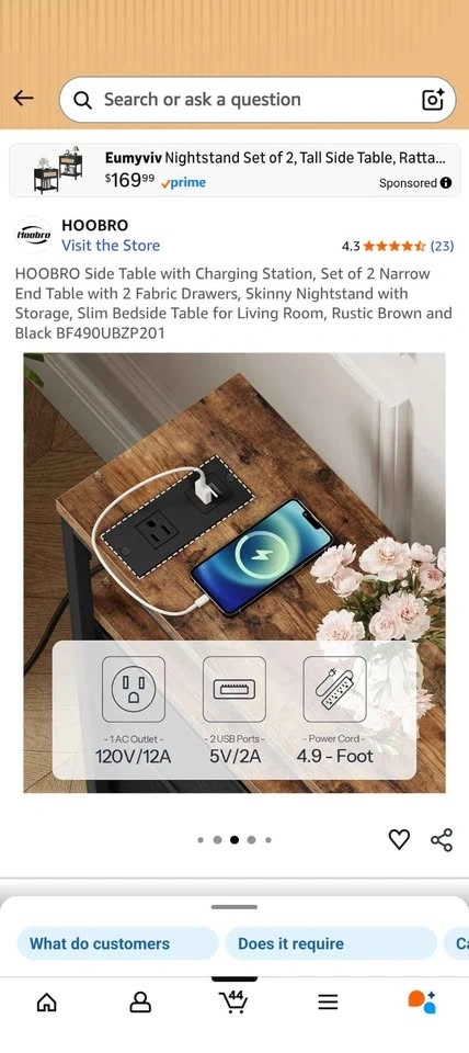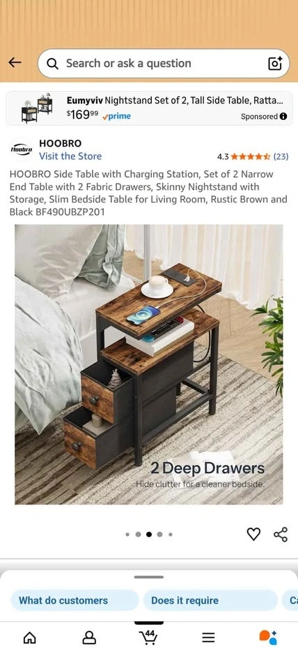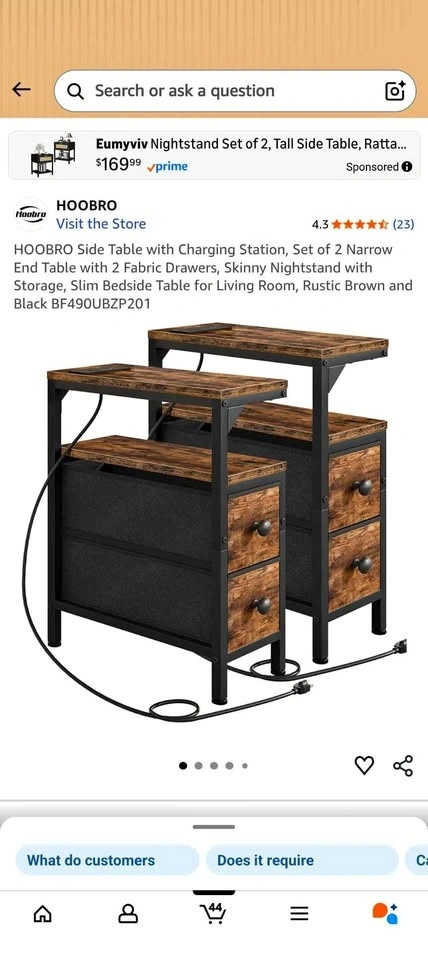 HOOBRO Side Table Set of 2 with Charging Station