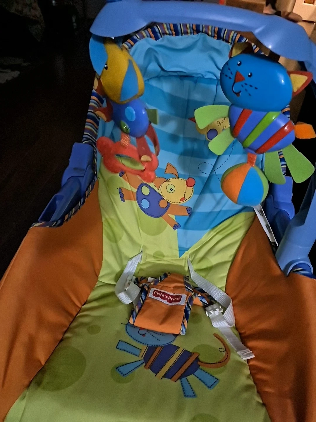 Selling a Fisher-Price Newborn to Toddler Rocker! It's in great shape and ready for a new little one. The rocker is designed to grow with your child, from newborn to toddler. It features a calming vibration to soothe babies and a reclining seat for comfortable feeding or napping. The toy bar with colourful toys encourages reaching and grasping, helping to develop motor skills. It's a great way to keep your little one entertained and comfortable!