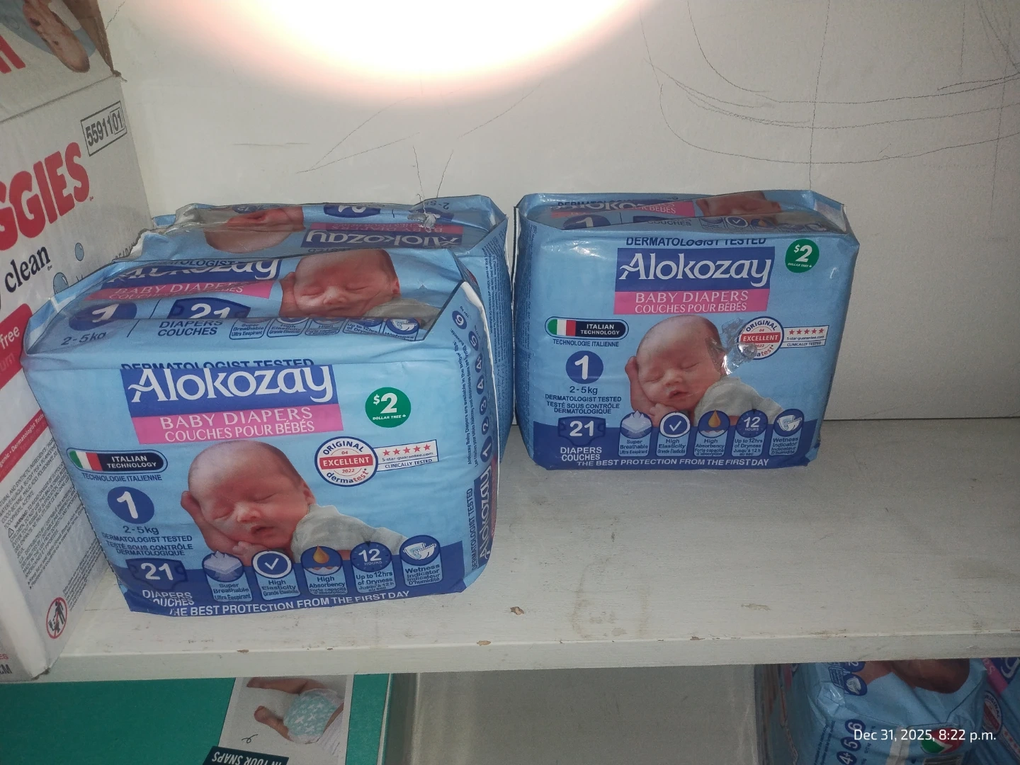 Selling Alokozay baby diapers, perfect for little ones! These are size 1, suitable for babies weighing 2-5kg. Each pack contains 21 diapers, offering excellent protection from the first day. They are dermatologist tested and feature Italian technology for high breathability and up to 12 hours of dryness