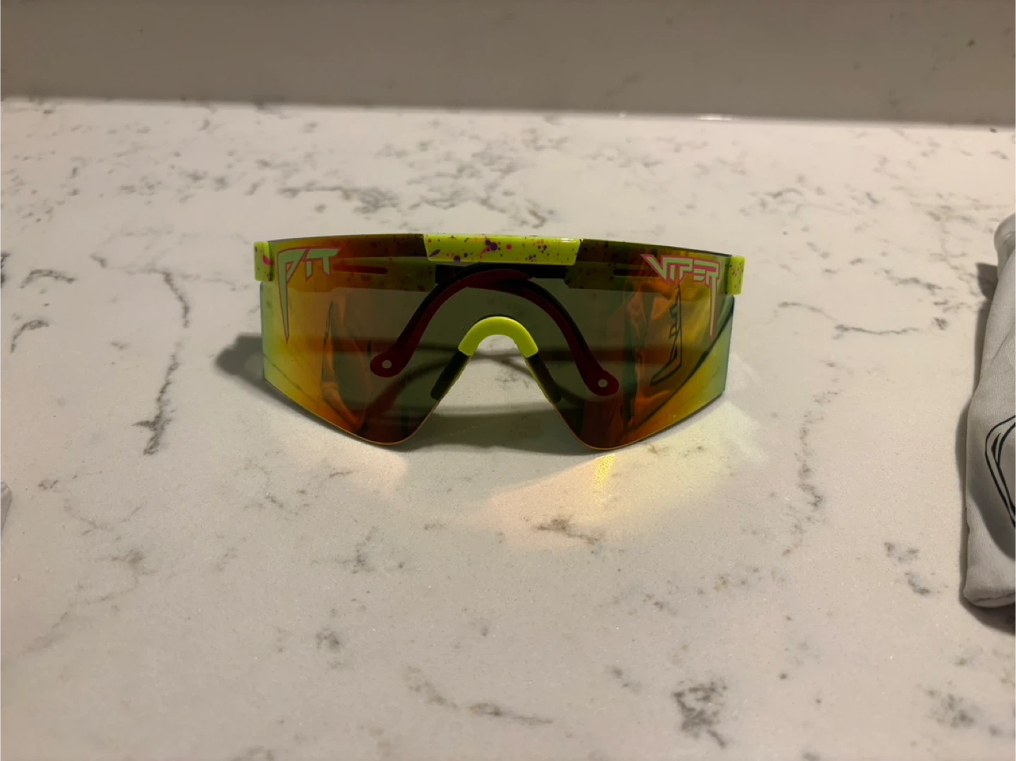 Selling a pair of Pit Viper The 1993 Originals sunglasses! These are a wide size and feature a rainbow colour scheme. The box is included. Please note that the box says "Driving Status: Not suitable for driving in twilight or at night"