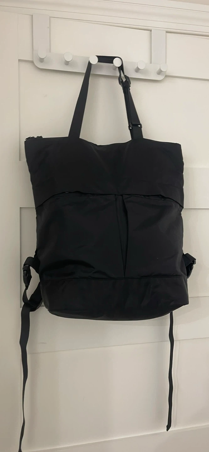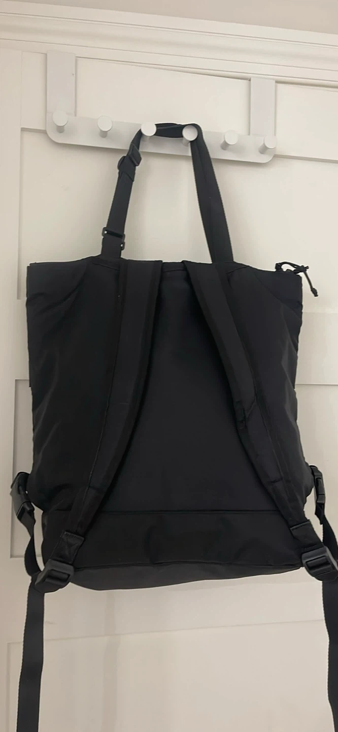 Selling a black uniqlo tote backpack! It's in great condition and ready for a new owner. Perfect for carrying your essentials around town or to the gym