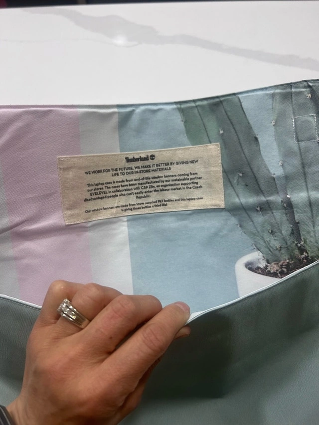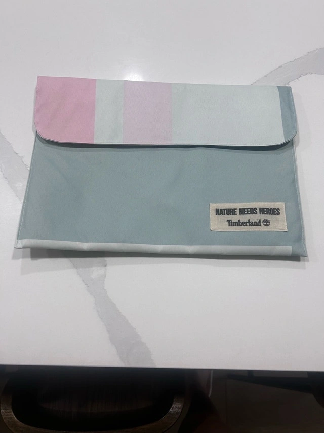 Keep your laptop safe and stylish with this Timberland laptop case, perfect for devices up to 13 inches. This eye-catching case is made from recycled materials and features a unique colour block design, adding a touch of eco-friendly flair to your everyday carry. The case is in excellent condition, ready to protect your tech with a clear conscience.