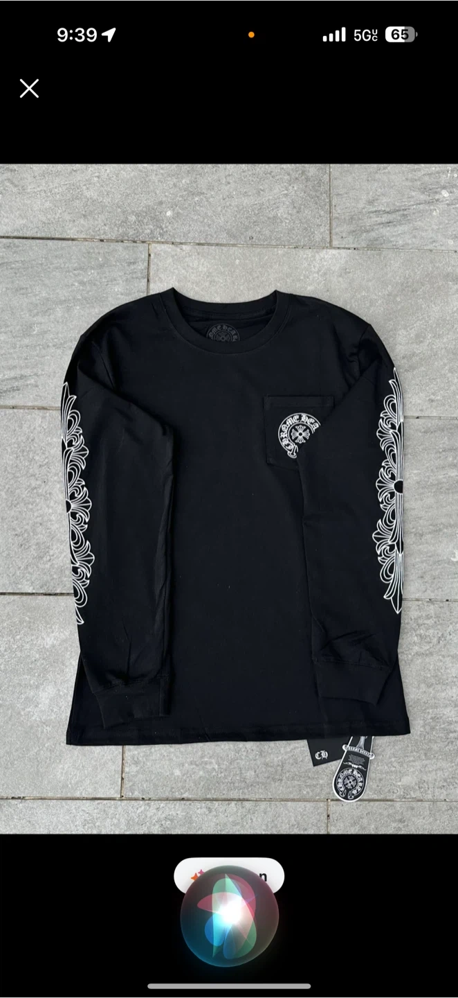 Selling a Chrome Hearts long sleeve shirt in black. Features the classic Chrome Hearts logo on the chest pocket and down the sleeves. Great condition!