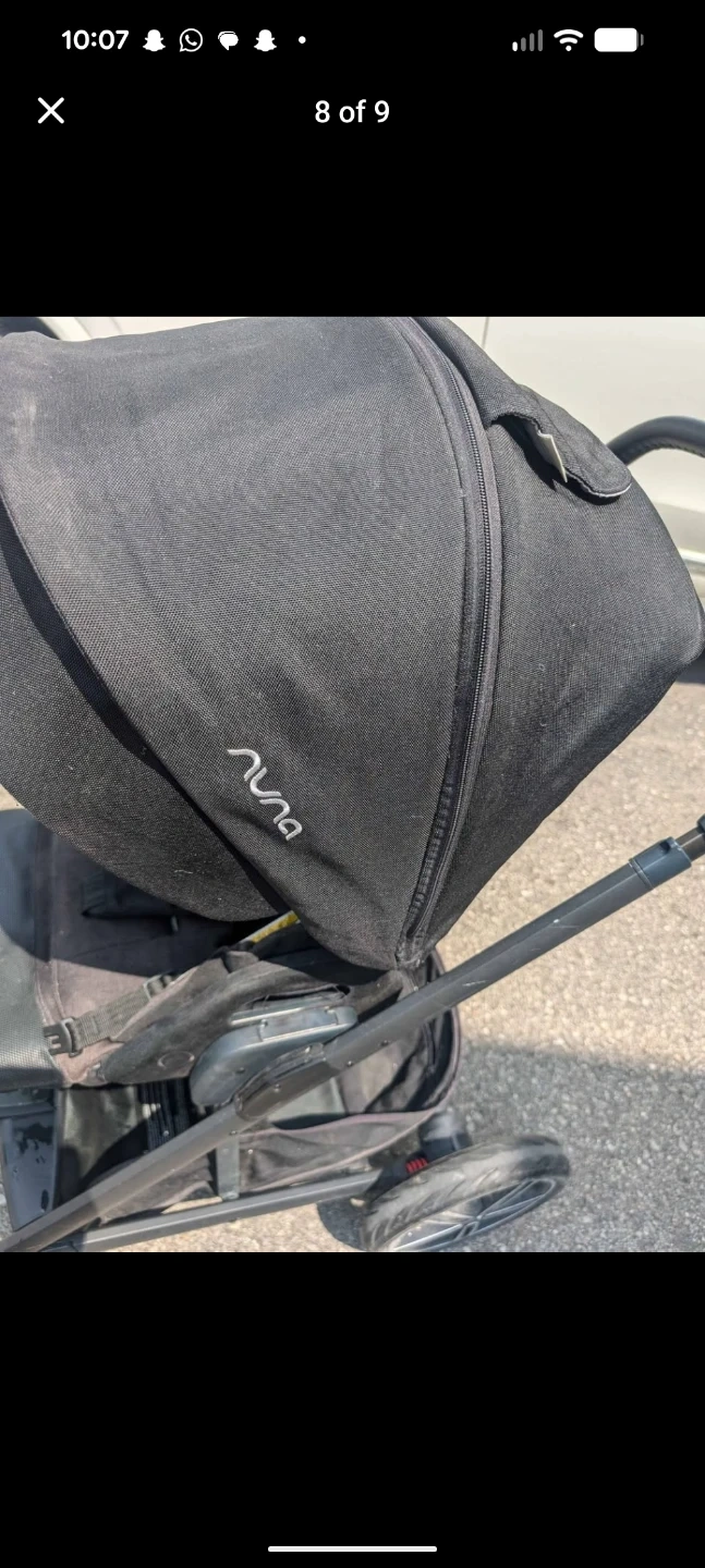 Selling a Nuna Mixx stroller in black. It's in good condition and ready for your little one's adventures! Super easy to fold and store unlike the other strollers. Comes with foot muff and extra frame. Fully reclining and can be used from baby to 50lbs.