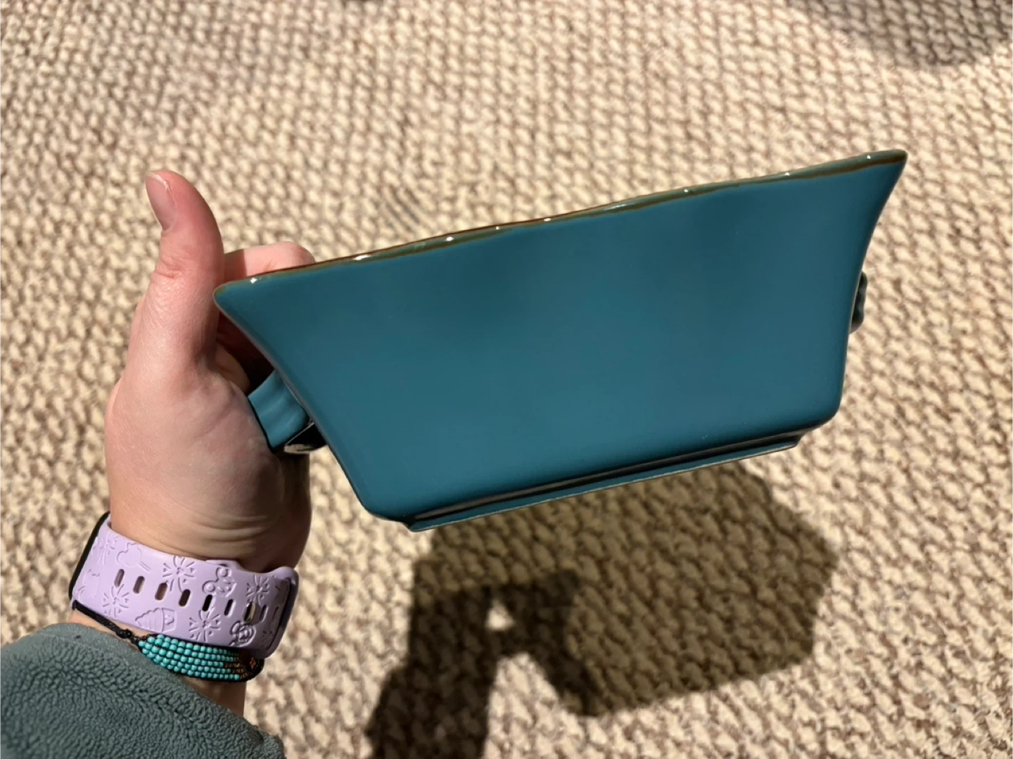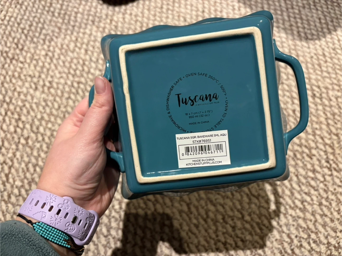 Selling a Tuscana bakeware dish! It's a lovely teal colour and oven safe up to 260°C (500°F). It's also dishwasher and microwave safe. The size is 18 x 18 and 7 cm deep and holds 950 ml (32 oz).
