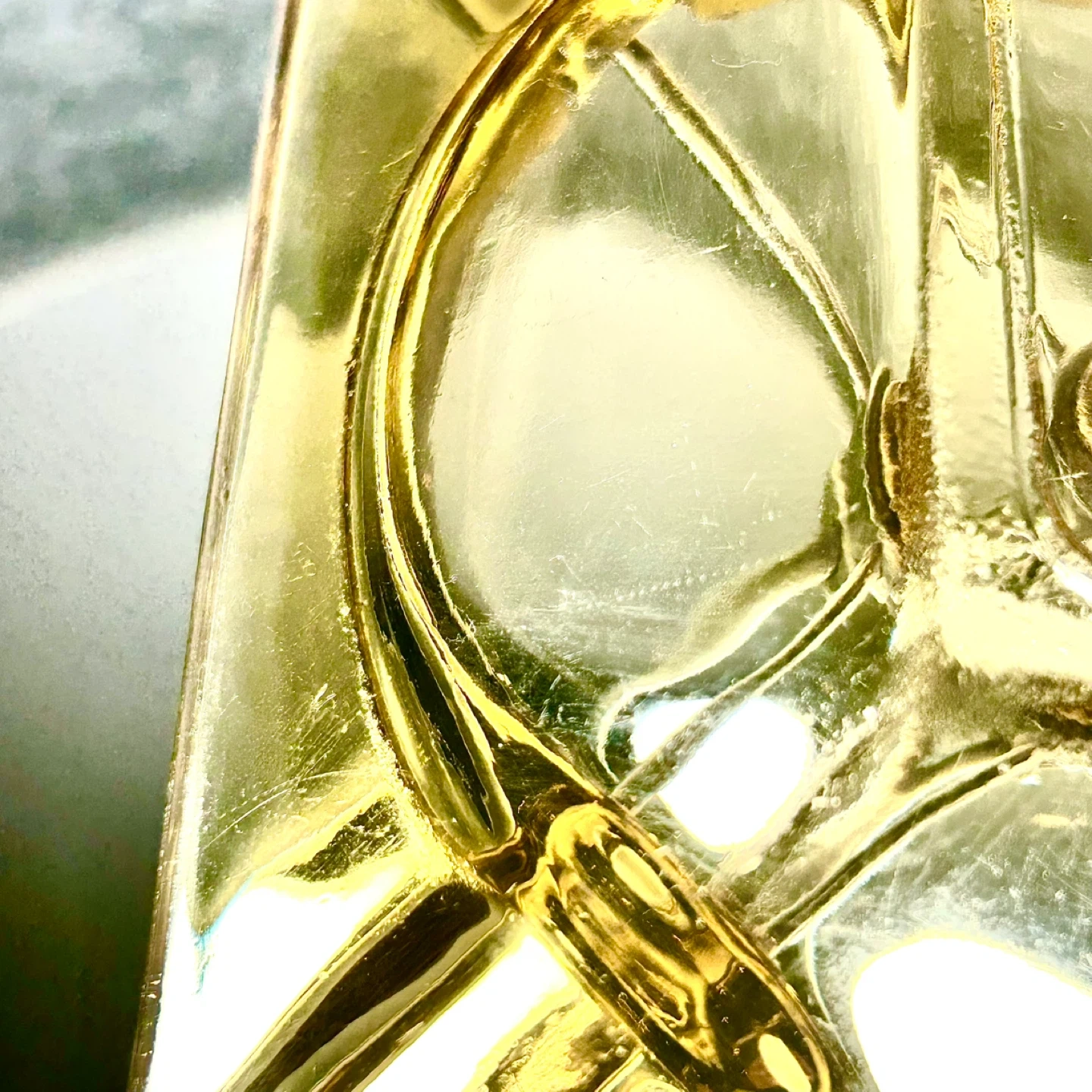 The weight is immediately striking. This piece has the density and visual authority associated with Murano-style Sommerso and sculptural glass of the 1950s–1960s when European glasshouses prioritized mass, clarity, and form over decoration. While no signature is present, the quality of the glass, depth of color, and complex internal shaping strongly suggest studio or high-end production, not decorative giftware.
