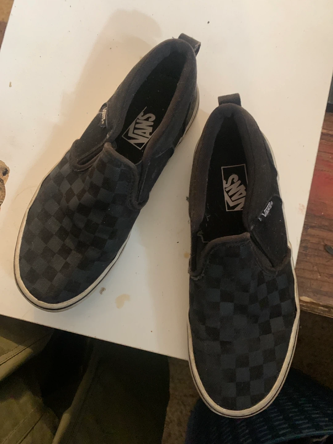 Selling a pair of Vans checkerboard slip-on shoes! They're in good condition and ready for a new owner. The classic checkerboard pattern is always in style. Perfect for casual wear