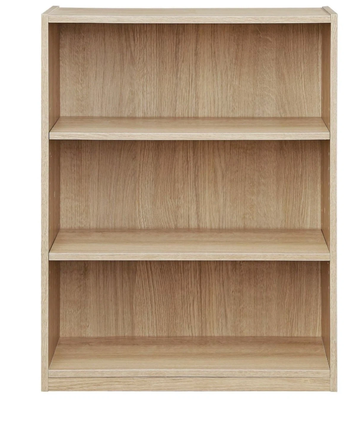 Here's a simple 3-shelf bookcase, perfect for adding some storage to any room. It has a nice oak finish.