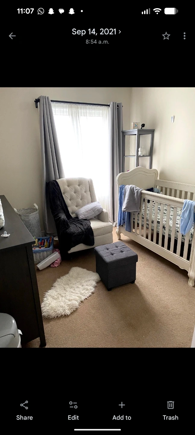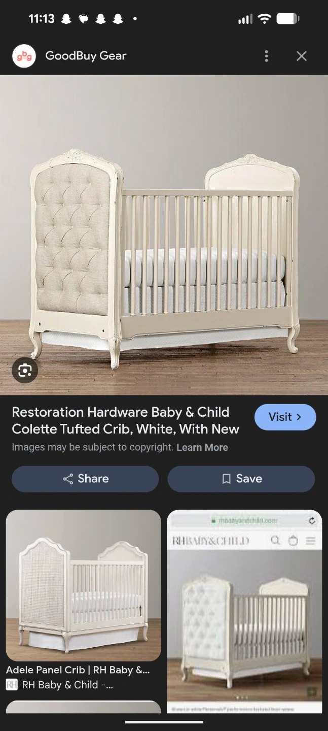 Gorgeous upholstered tufted baby crib. A Restoration Hardware Colette Tufted Crib lookalike in white. It's convertible and in excellent condition and would be a lovely addition to any nursery! So chic.
