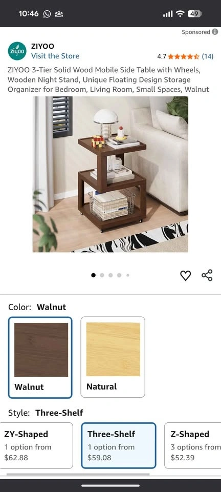 Buy & SellBrand New: stylish ❤️ 3 tier End table with wheels (brown)Brand New: stylish ❤️ 3 tier End table with wheels (brown)$41New still in box just one Scratch on corner of a block during transportation ( shown in picture). Otherwise all new. Let me know if you're interested!WHERE TO MEETCheck LocationView MapSELLERverifiedRohitClifton Hill1307 reviews0 chats·5 favorites·35 viewsSEND CHAT TO SELLERHi Rohit! I’m interested in your listing.Hi Rohit! I’m interested in your listing.Get the Karrot app to chatSign In to chat