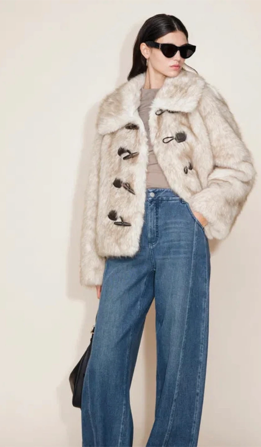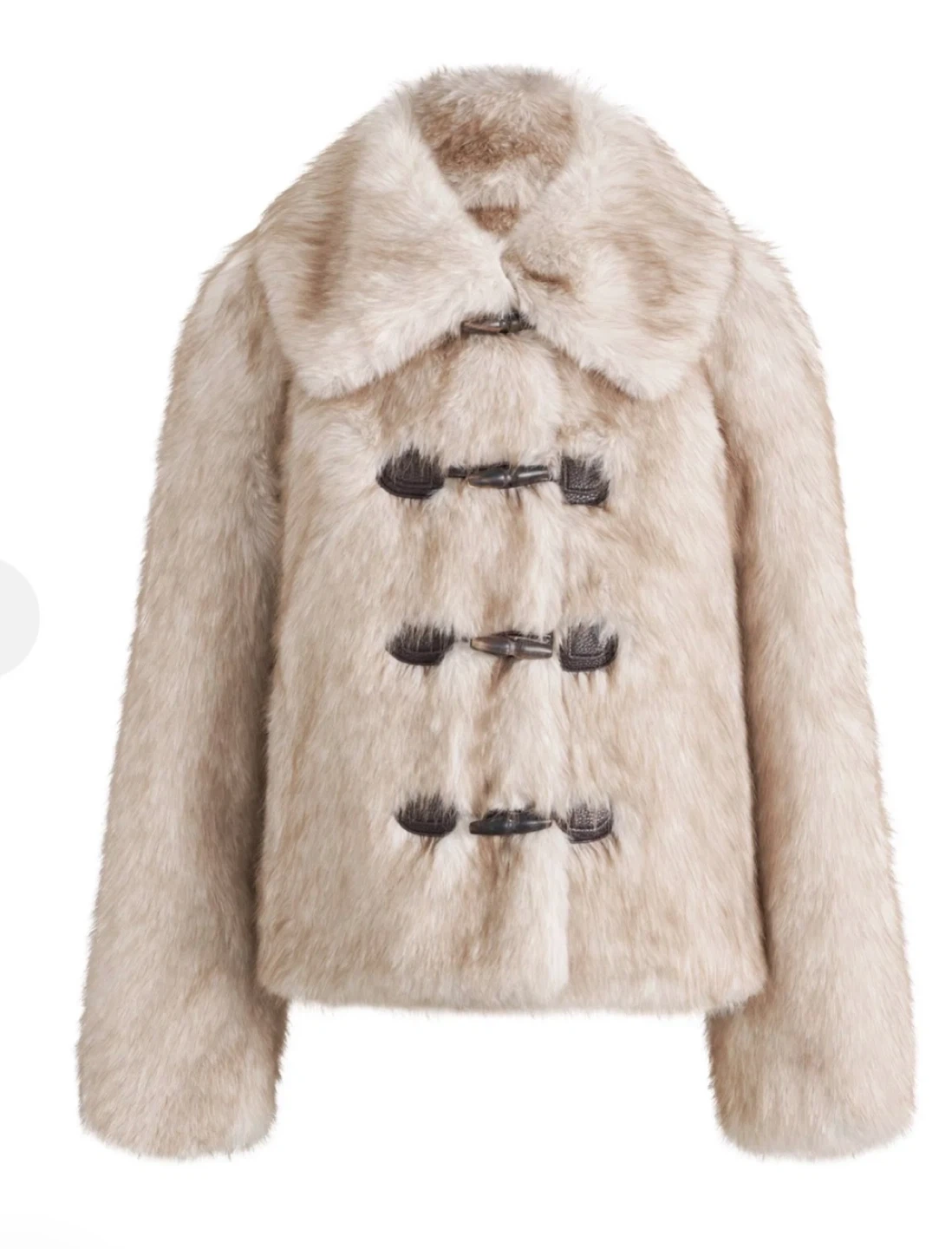 Faith Lapel Horn button Coat in Faux Fox Fur
