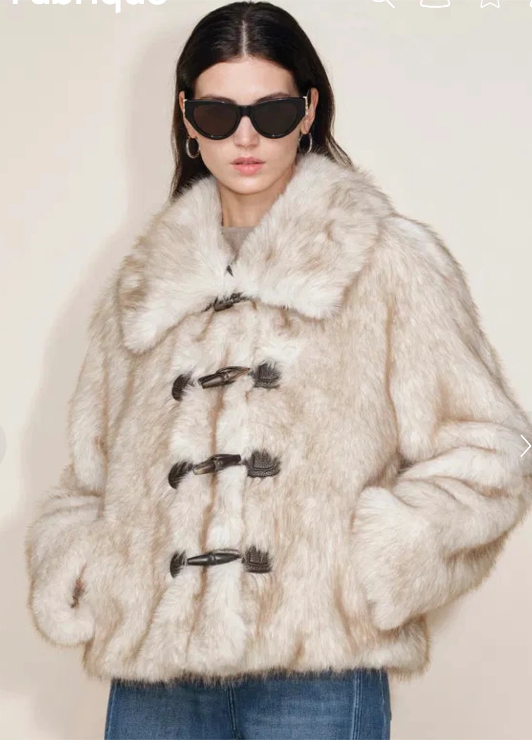Faith Lapel Horn button Coat in Faux Fox Fur