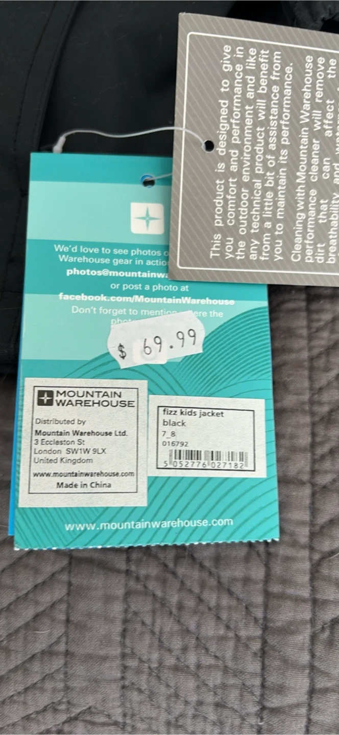 Selling a Mountain Warehouse kids jacket in black. It's in good condition and ready for the colder weather!