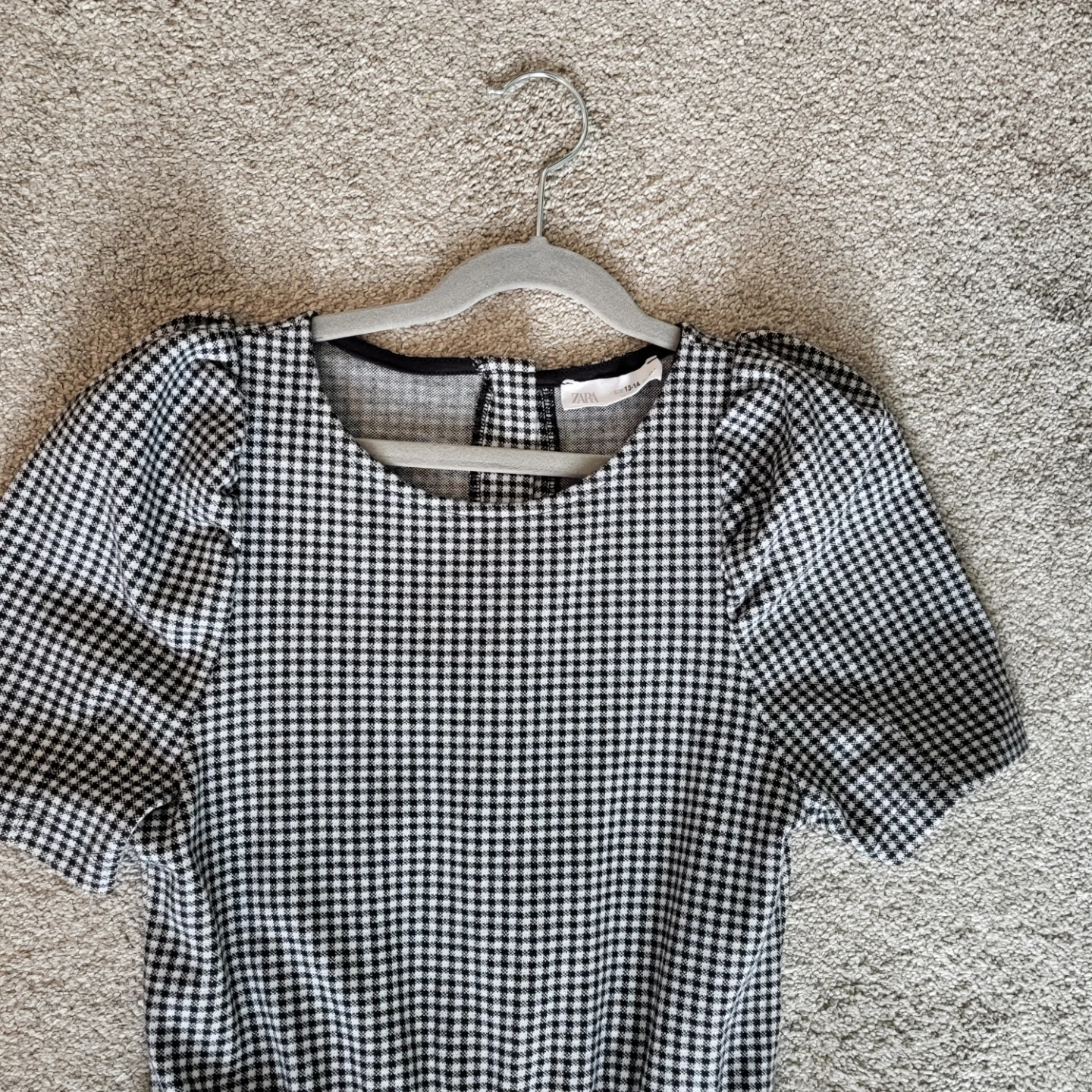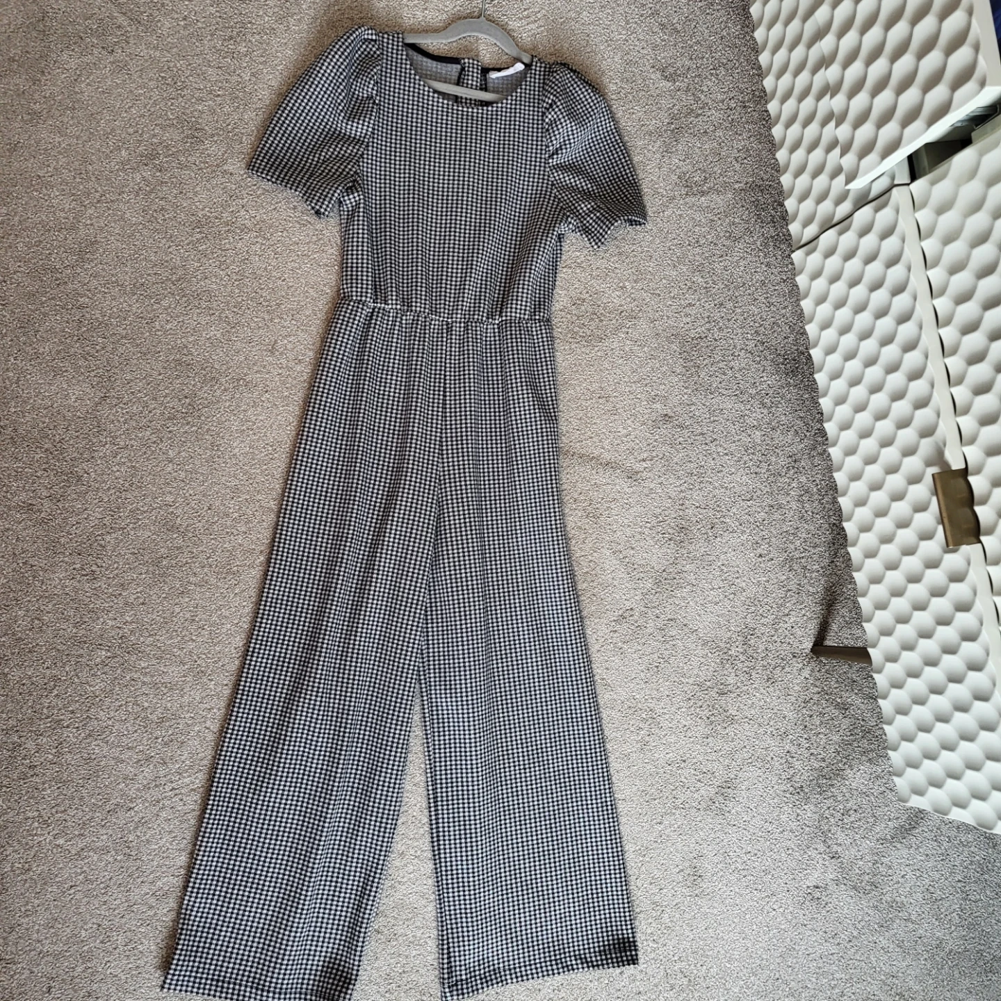 Selling a cute Zara gingham jumpsuit in Youth size 13-14! It's in great condition and features a classic black and white checkered pattern. Prcatically New, worn twice for family pics.